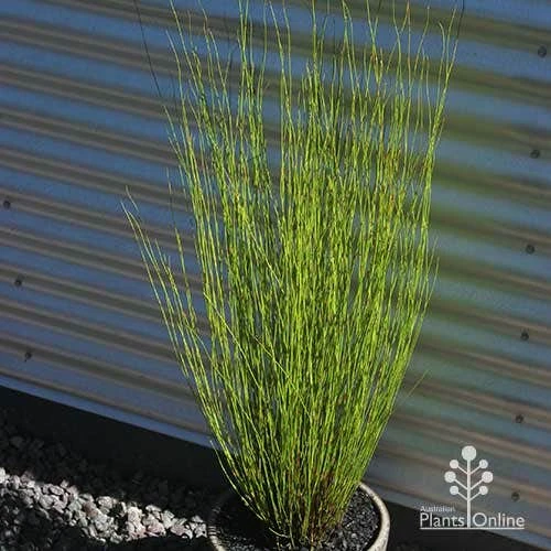 This graceful native restio is the answer to your prayers if you are looking for an elegant grass for revegetation, wetland areas, waterlogged soils, pond margins, erosion control, and to provide shelter for native creatures. The bright apple-green fronds contrast with chestnut brown banding along each slender stem.