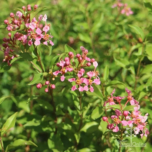 Usually grown for the vitamin C-rich red fruits, this dwarf selection is also desirable for the abundant bright pink windmill flowers that lure in birds and butterflies. It’s a neat compact little shrub with so much going for it, it’s bound to become a favourite.
